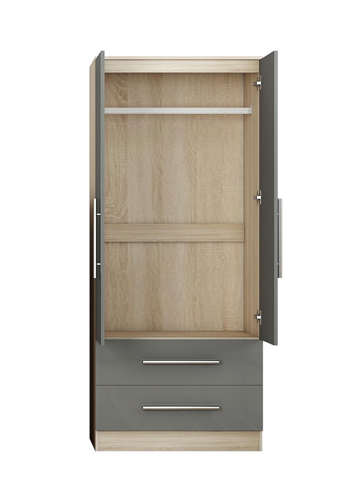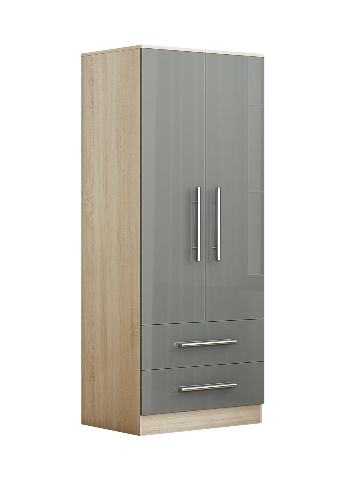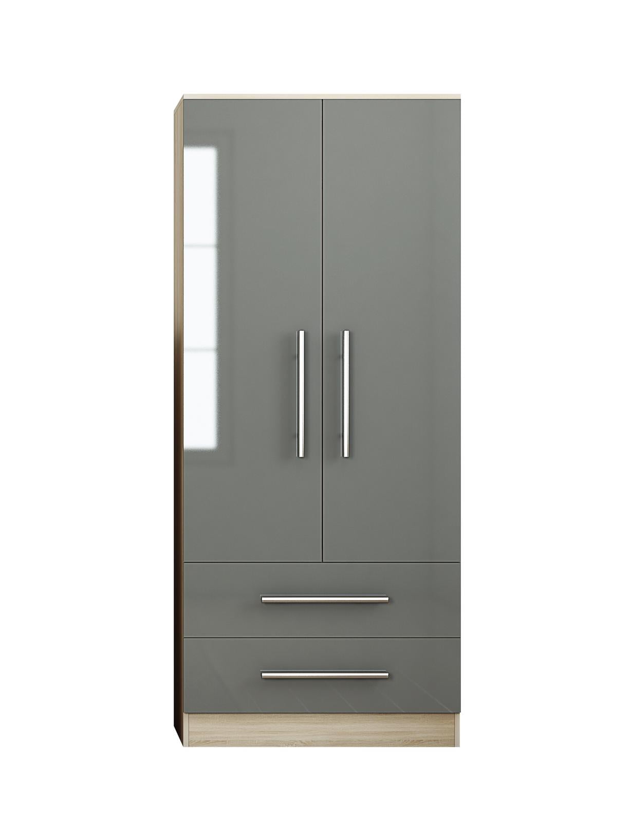 2 Door Wardrobe, High Gloss Grey